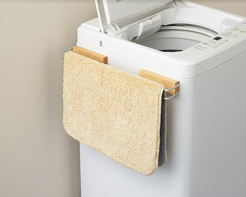 一種安裝有磁鐵的浴墊掛架。您可以根據浴墊的大小自由調整寬度。如果單獨使用,它也可以用作毛巾架。
